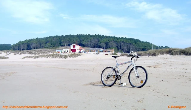 Era un domingo por la mañana y apenas había gente en la playa, bajé a la arena, saqué esta foto y posteriormente crucé toda la playa montado (gracias a que la arena húmeda es más dura y no te entierras) hasta Punta Penencia, por donde salí de la playa para regresar a Ferrol.