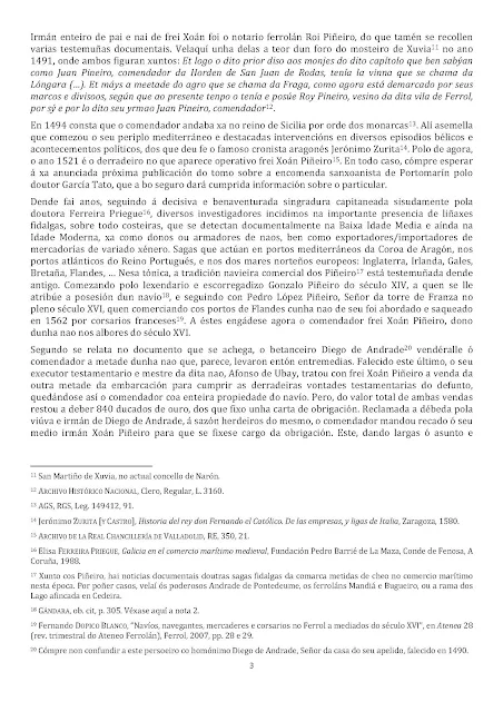 Extraído do artigo: Ano 1500: A nao do ferrolán frei Xoán Piñeiro de Naraío, comendador sanxoanista de Trevejo (Cuenca) e de Portomarín (Lugo). Fernando DOPICO BLANCO. Ferrol, 2014.